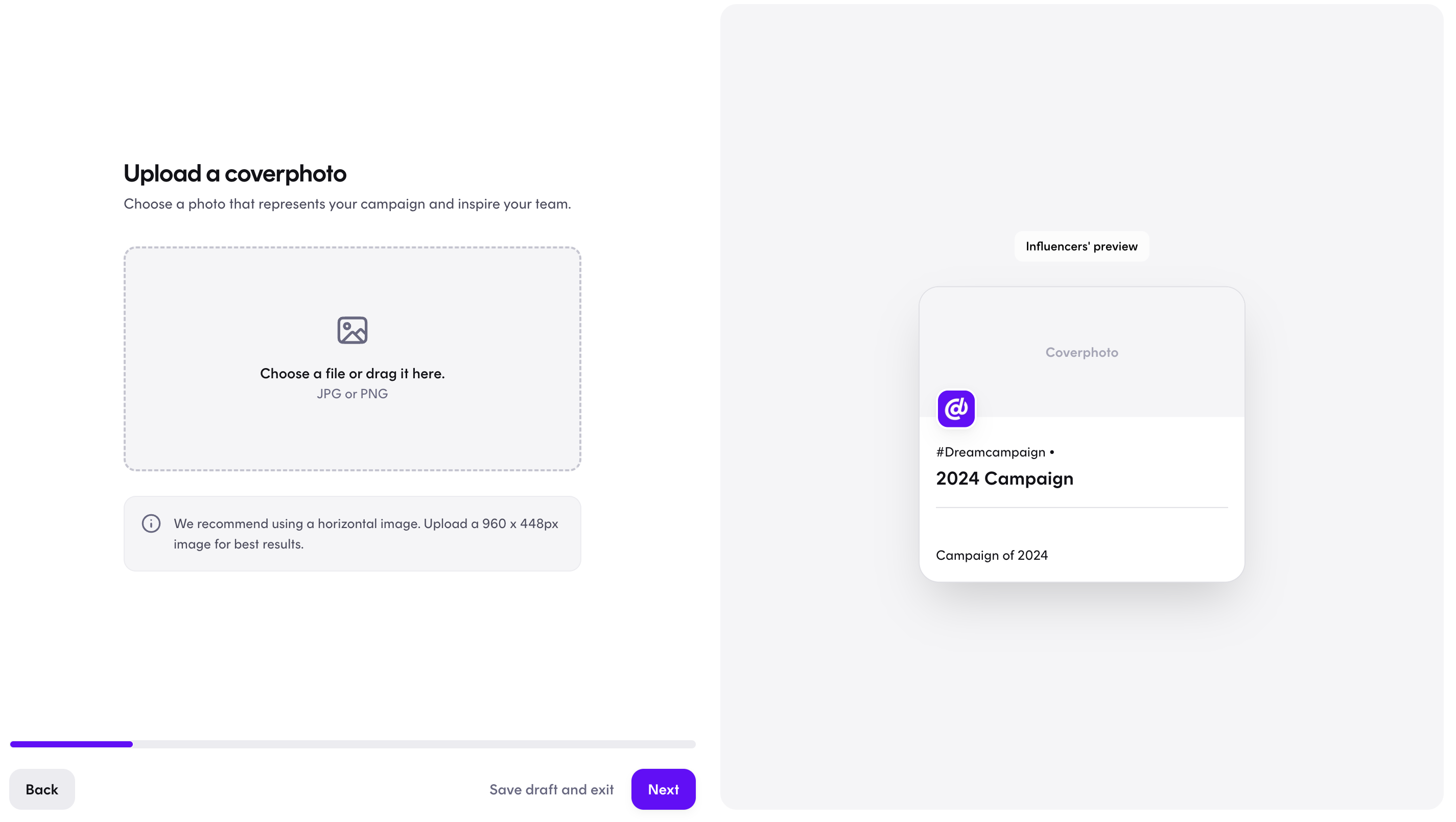 Here you shall choose a photo that represents your campaign and inspires your team.