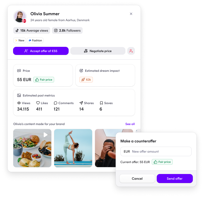 Dynamic Pricing is our new way of making influencer campaigns fairer, more efficient, and results-driven. Instead of setting a single fixed fee per influencer, brands can now set an overall campaign budget—and influencers are compensated based on the predicted impact they will generate.