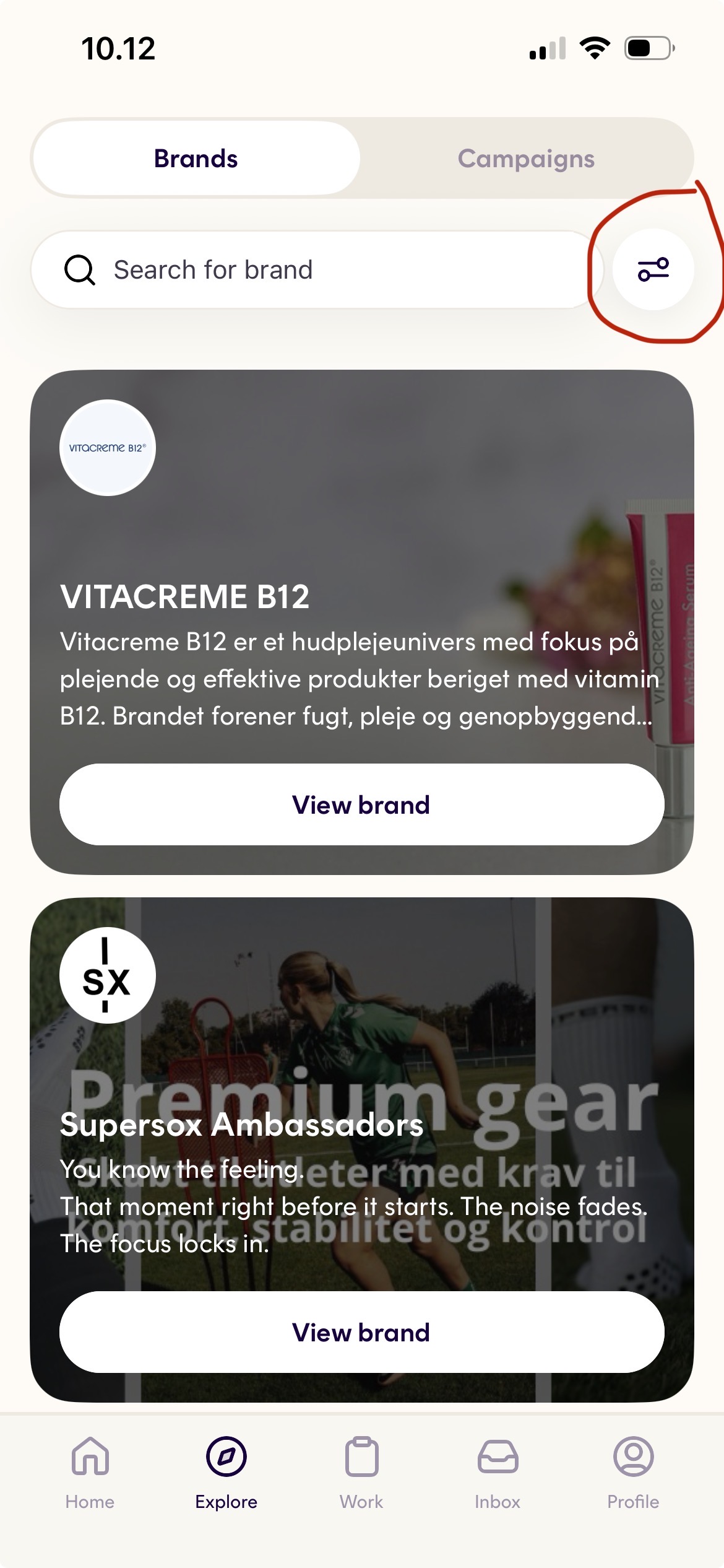 When you know your direction, you can find relevant brands in the app under “Explore,” and use the filter button to narrow down your search.
