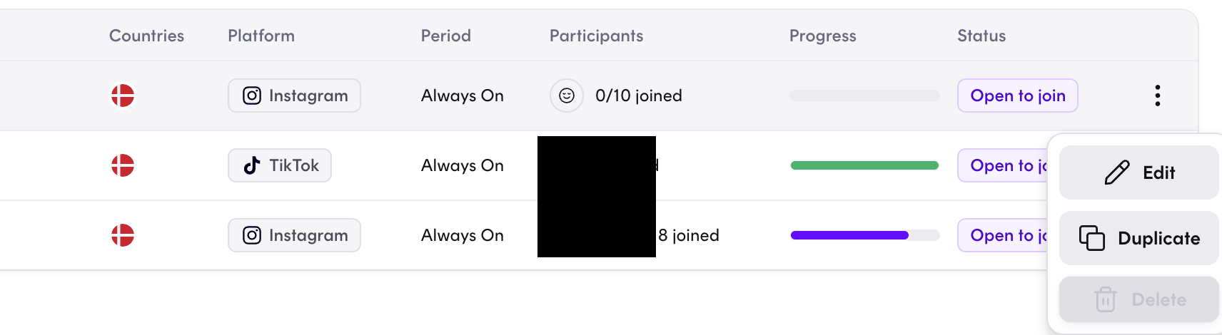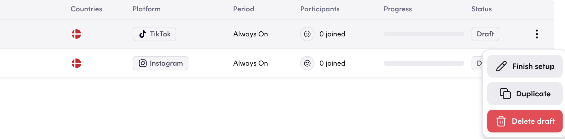 If a campaign haven't been published yet, and is still in drafts, you can delete the campaign by clicking into the three dots on the right of the campaign: